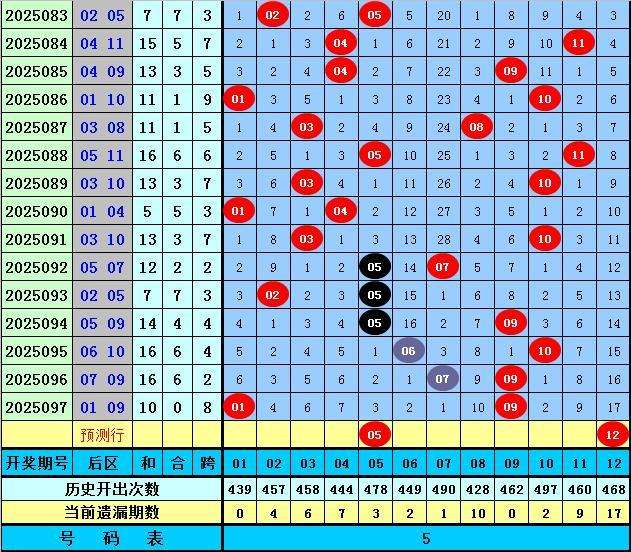 后区分析:在第098期历史同期开奖中,后区奖号奇偶比为18:16,最近5年同期后区奇偶走势为:全偶、全奇、全奇、全奇、一奇一偶,今年同期看好再出一奇一偶组合,关注号码05、12。