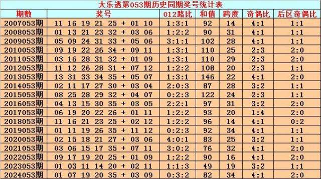 综上所述,大乐透第2025053期前区012路比参考1:3:1。