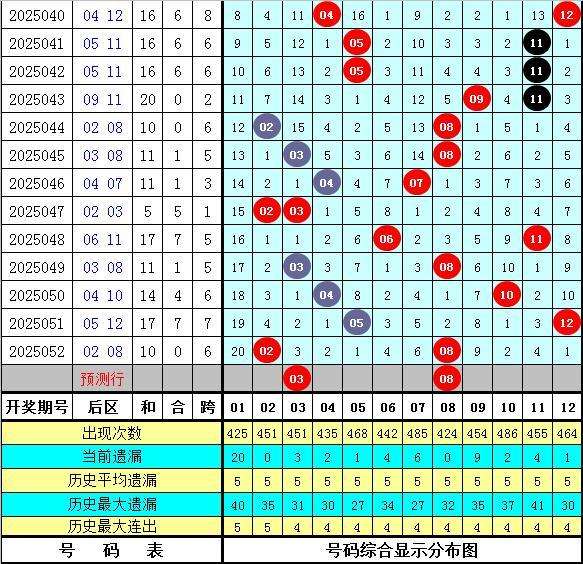 后区分析:在第053期历史同期开奖中,后区奖号全偶组合开出1次,一奇一偶组合开出9次,全奇组合开出8次,本期后区预计出现一奇一偶组合,看好号码03、08、09、12。