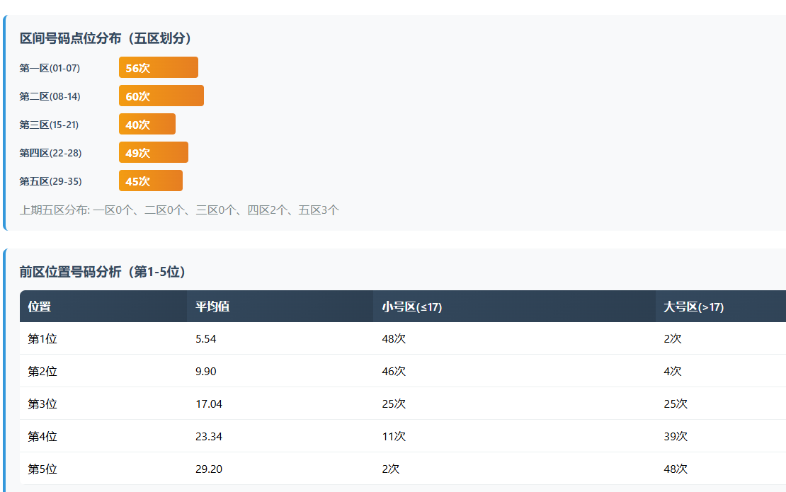 3. 区间点位的“冷热交替” 我们将前区分为五个区来看:
