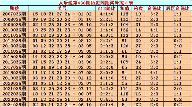 综上所述,大乐透第2025036期前区012路比参考2:1:2。