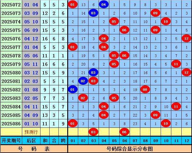后区分析:后区最近7期开出奖号组合为:03+12、02+03、01+08、02+05、04+11、04+09、01+10,全为一奇一偶组合,本期后区关注一奇一偶组合,参考号码03、06。