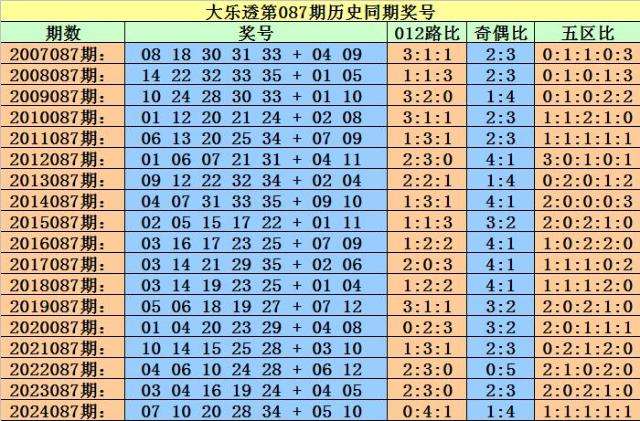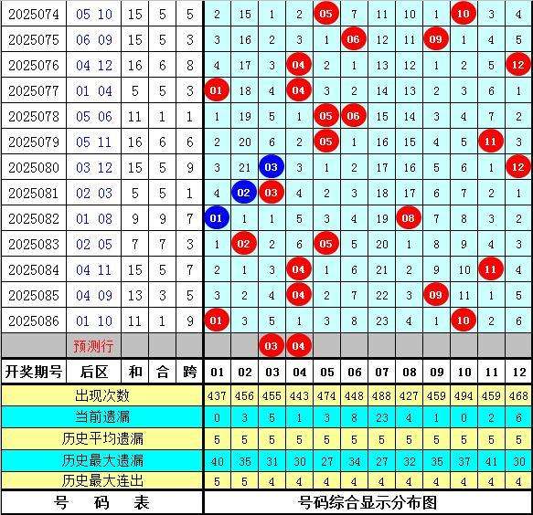 小霸王大乐透第2025087期历史同期后区定位分析