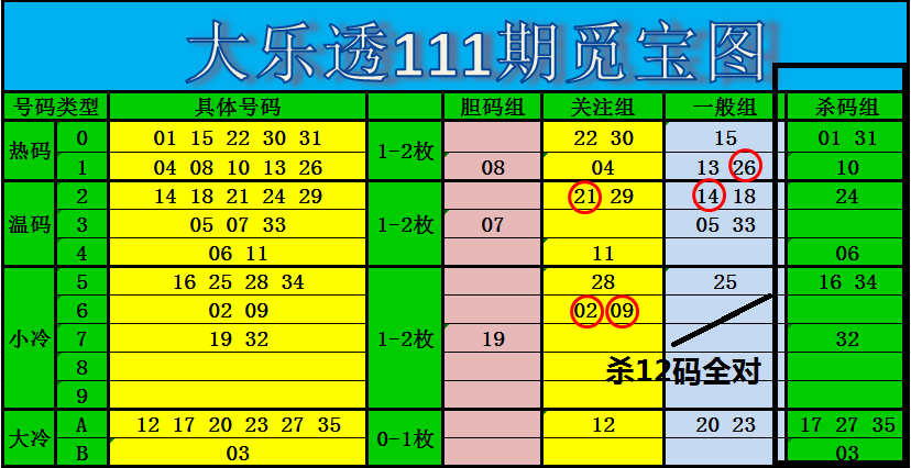 上期热、温、小、大冷2120组合形态。追踪数据请参考前面的大乐透关键参数统计表。