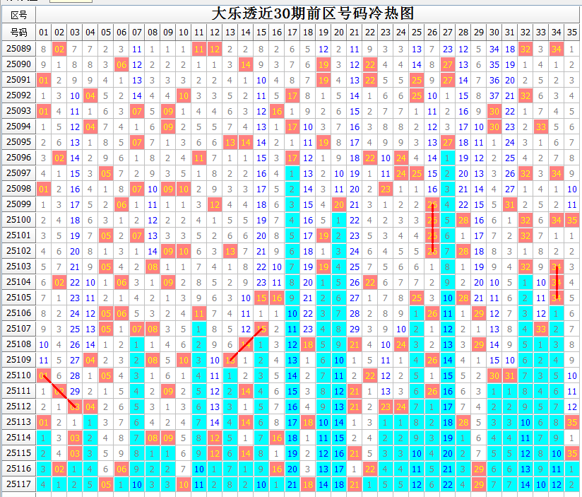 对前区大势的把握,少不了号码区间分布的情况。