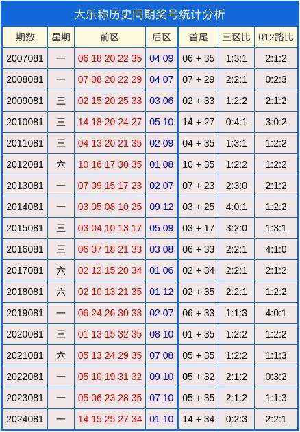 大乐透历史同期奖号统计图