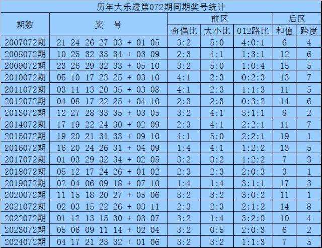 袁军师体彩大乐透第2025072期历史同期奖号分析: