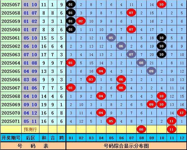 后区分析:在第072期历史同期开奖中,和值大小为5:13,跨度奇偶比为11:7,本期后区注意两码08和11。