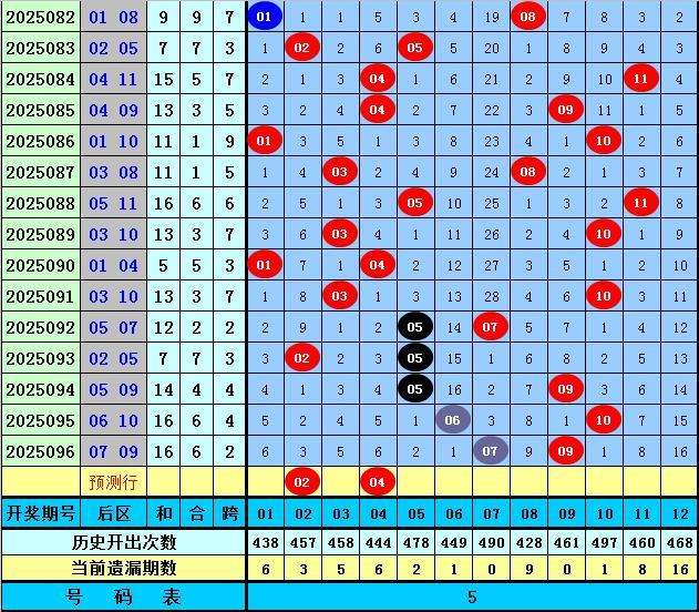 后区分析【一区01-04,二区05-08,三区09-12】:上期后区奖号为07和09,分别落在第二、三区,近50期后区三区比为40:30:30,近10期三区比为6:8:6,本期重防第一区号码大热,精选两码02+04。