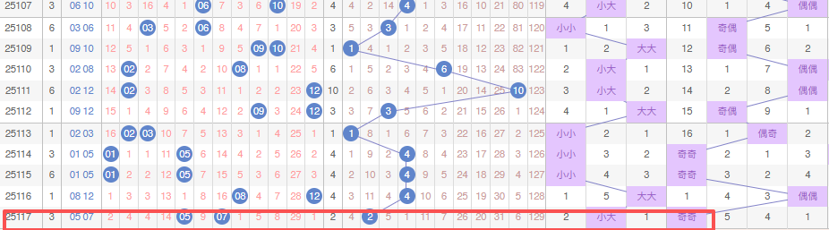 (3)同期重码:什么是同期号码?比如今天周三,同期就是上周三开奖号码,比如上周三开奖号码04 05 06 07 08,平均每期同期重码开1枚,我们可以在同期号码里面挑选号码进行选择!