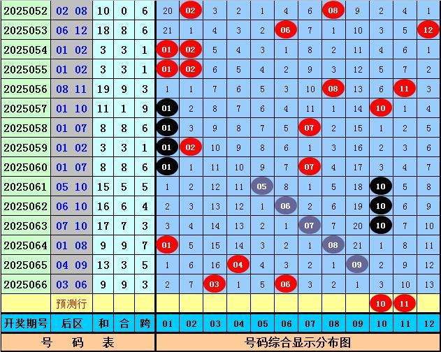 后区分析:在第067期历史同期开奖中,后区奖号一奇一偶出现12次,全奇出现1次,全偶出现5次,今年第067期后区预计出现一奇一偶组合,看好两码10和11。