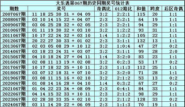水镜体彩大乐透第2025067期历史同期奖号分析: