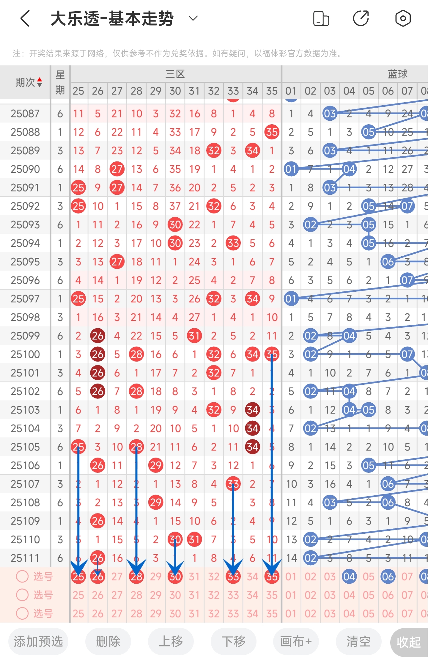 第25105期大乐透文章推荐中命中15,25,34等3个红球,10一个蓝球