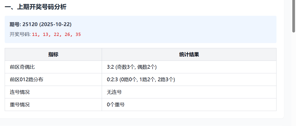 嗨,朋友,像喝杯温开水一样先把上期回顾一口气读完:上期(第25120期,2025-10-22)前区开出 11、13、22、26、35,后区 02、08。前区奇偶比 3:2,012路 0:2:3(0路0个、1路2个、2路3个),本期没有连号、没有重号。把这手牌放在近50期的长卷里翻看,会发现既有惯性,也有“喘息”的空档 —— 这是我们要利用的节奏感。😊