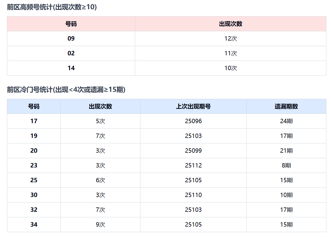 小结:高频号显示出持续活跃的信号,冷门号则呈现不同级别的“休眠”——其中17、20的遗漏状态尤为显著,属于需要持续追踪的“迟到者”。