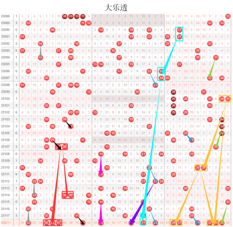 注意5个红球的组合冷温热码和值范围保持在-1~5