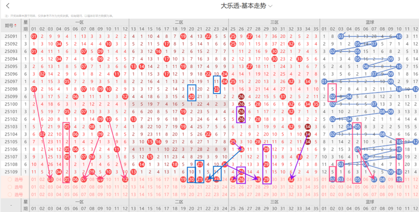 三、体彩大乐透第110期选号大底汇总