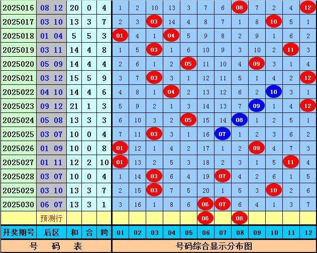后区号码分析:第031期历史同期开奖中,后区两码一大一小开出11次,全大开出1次,全小开出6次,本期后区预计出现一大一小奖号,参考号码03、05、06、08。