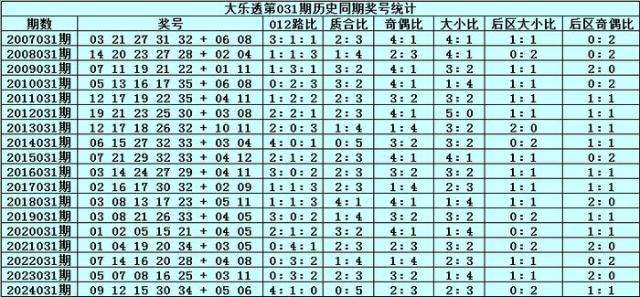 体彩大乐透第2025031期历史同期开奖号码分析: