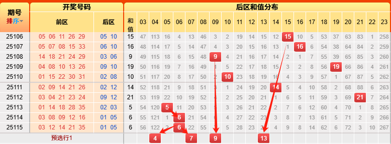 接下来我们来看前区小大、奇偶、质合、和值分布图: