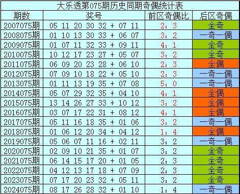 后区分析:在第075期历史同期开奖中,后区奖号奇偶比为20:16,最近5年同期后区奇偶走势为:全奇、全奇、全奇、全奇、一奇一偶,今年同期看好偶数号码大热,关注号码04、12。