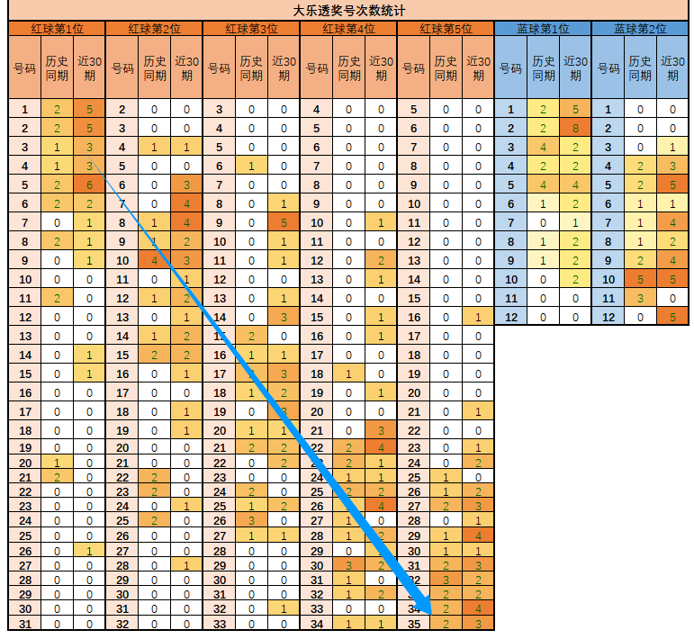 第5位,23-35是热门范围,历史同期热门号码为32,近期热门号码为29-34,建议重点关注26-27-29-31-32-34-35;