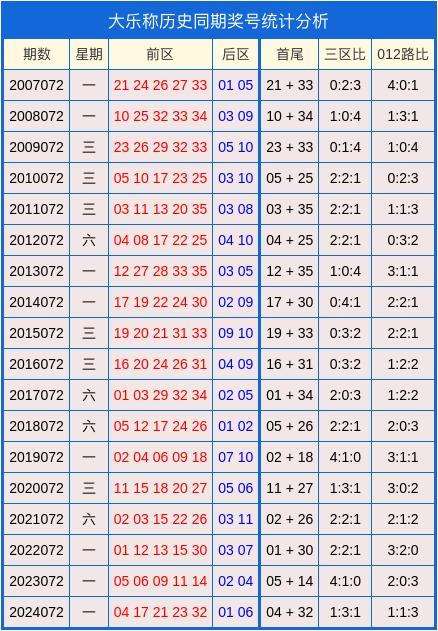 大乐透历史同期奖号统计图