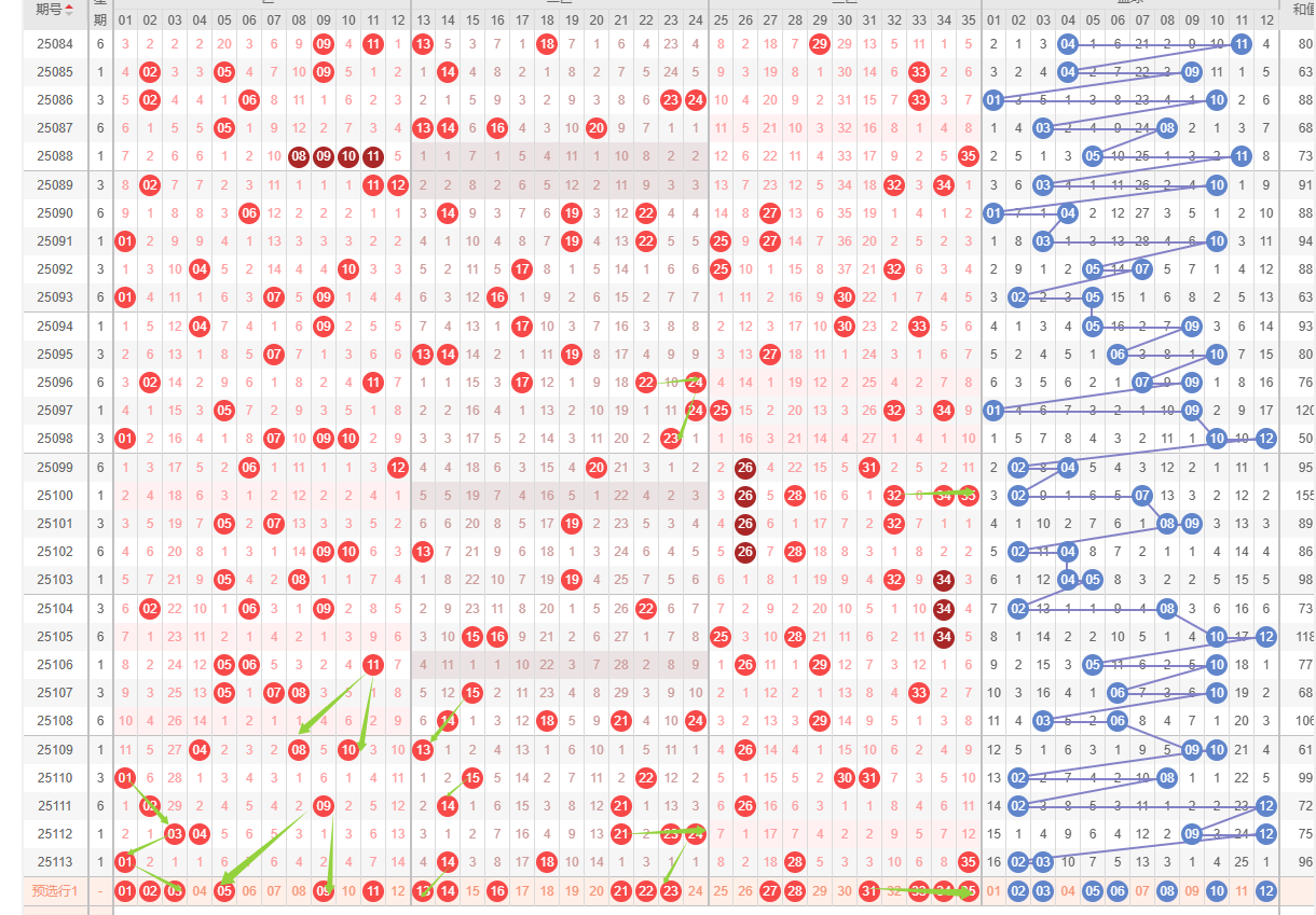 推荐大底:一区:1-2-3-5-9,二区:13-14-16-22-23;三区:27-31-33-34-35;蓝区:2-3-8-10-12