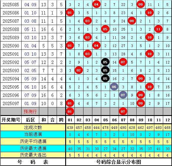 在历史同期奖号中,后区奖号跨度尾数大小比为9:8(定义:跨度1、2、3、10、11为小尾跨度,跨度4、5、6、7、8、9为大尾跨度),出现次数基本持平,本期预计开出大尾跨度,参考跨度6。