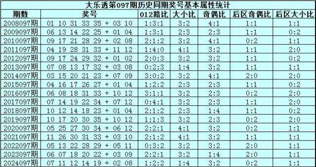 大乐透第2025097期历史同期号码分析:
