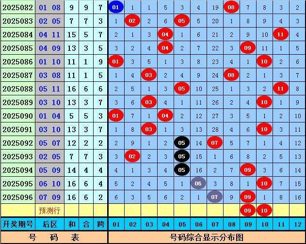 后区推荐:第097期历史同期后区奇偶比总比例为15:19,奇数走势较冷,本期注意回补,关注一奇一偶组合,两码参考09、10。