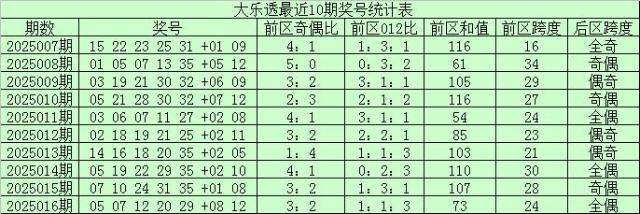 大乐透第2025016期开奖,前区:05、07、12、20、29;后区:08、12。其中前区和值为73,跨度为24,012路比为1:1:3,奇偶比为3:2,后区开出全偶、2路+0路组合。