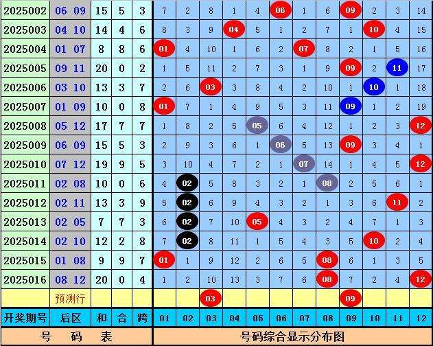 后区分析:上期后区开出全偶、2路+0路组合08、12,最近10期后区奖号奇偶比为8:12,偶数号码走势活跃,后区奖号012路比为6:4:10,本期预计出现在03、07、09、11、12之中,两码单挑03、09。