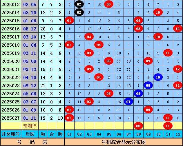后区号码分析:在第028期历史同期开奖中奖,奖号04 10出现5次,奖号01 03 07 12出现4次,奖号08 09出现3次,奖号11出现2次,奖号02 06出现1次,奖号05没有出现。本期后区五码参考01、03、08、09、11。