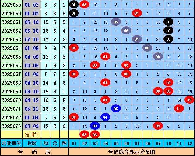 前区和值:最近30期前区和值平均值为91。5,最近10期前区和值平均值为90。0,比中位和值高14。0个点位,上期前区和值为89,对比前期上升10个点位,本期预计和值继续上升,出现在90-100区间。