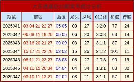 开奖回顾:大乐透第2025047期奖号为:03、10、11、12、21 + 02、03。
