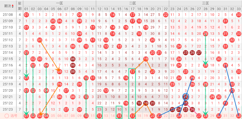 根据以上特点,我们对双色球第25124期进行如下分析: