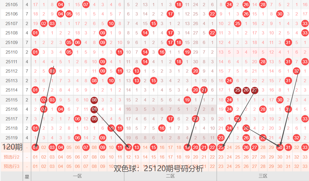 先介绍下上期开奖号码的基本情况,红球奇偶比:3:3,区间比:2:0:4,012路比:2:1:3,通过上期号码简单介绍,分享下25120期号码球个人认为的出号可能,供大家参考!