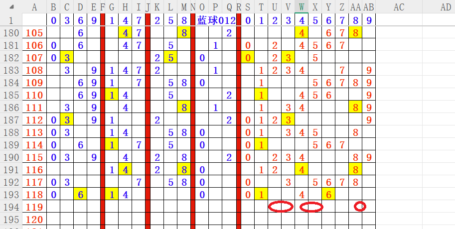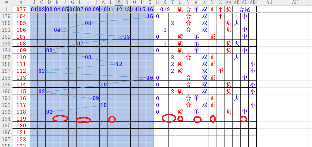 如上图4,012路分析012路,本期重点10路。重点 04 05 07 08 11