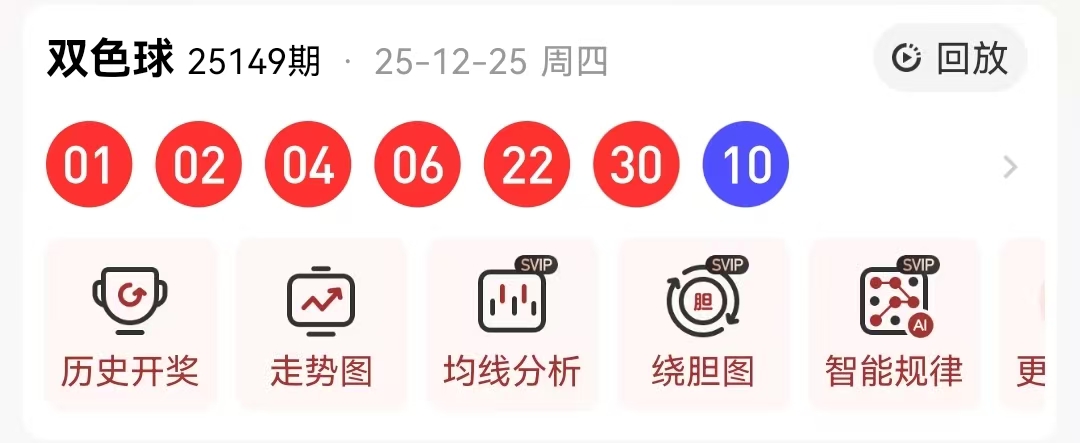 先来回顾一下第2025149期的双色球开奖结果:01 02 04 06 22 30+10,以下是对本期数据的详细分析: