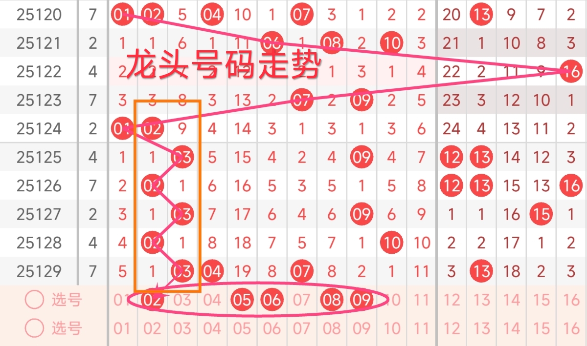 龙头号码走势分析: