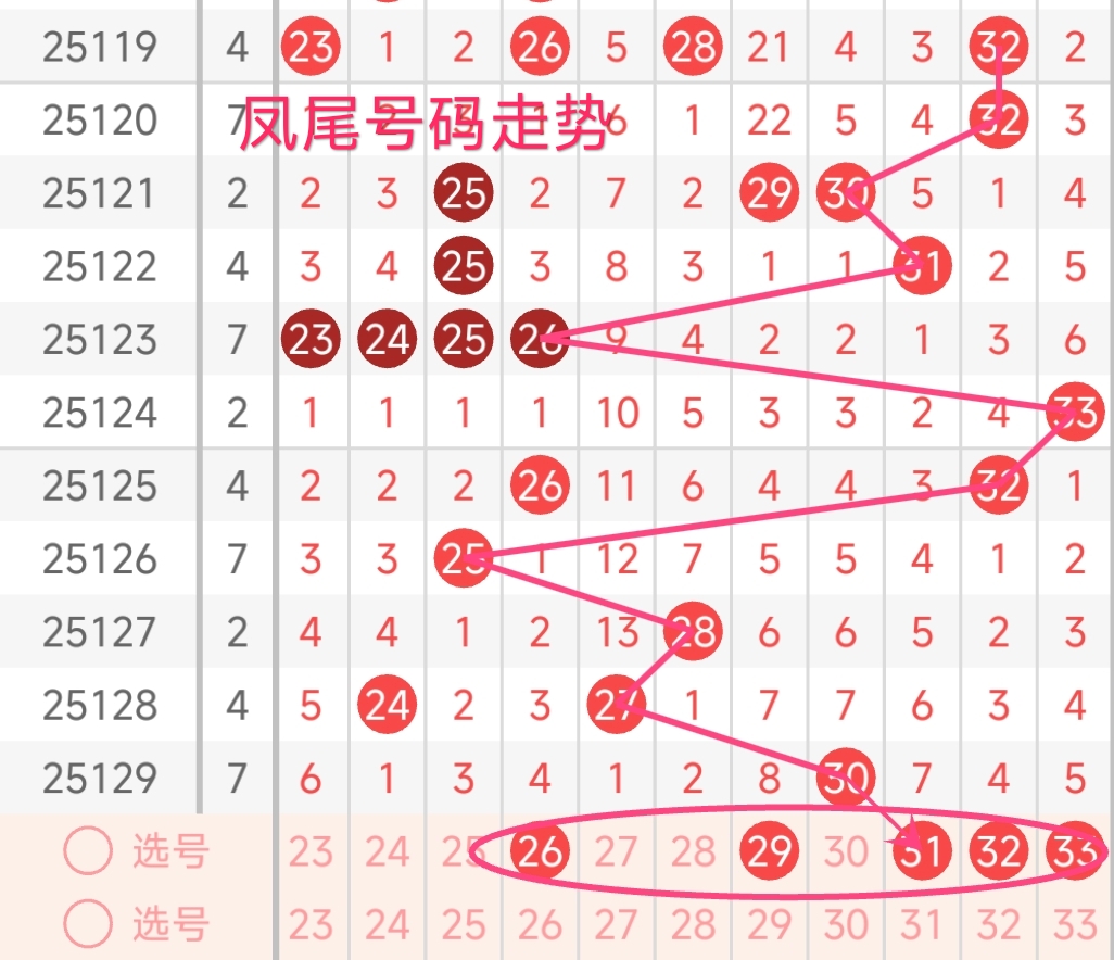 凤尾号码走势分析: