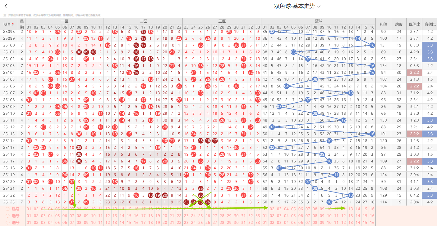一、红球特征分析:(通过整体走势不难看出每期开奖号都具备以下明显的特征点)