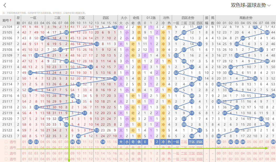 上期开出大号偶数10,从走势上号码整体分布结合折线运行轨迹本期蓝球重点关注五码02 03 09 10 14参考。有关更多详细选号思路以及号码组合搭配 我们15:00~17:30点有选号思路详细解析的直播节目欢迎大家前来一起探讨交流。