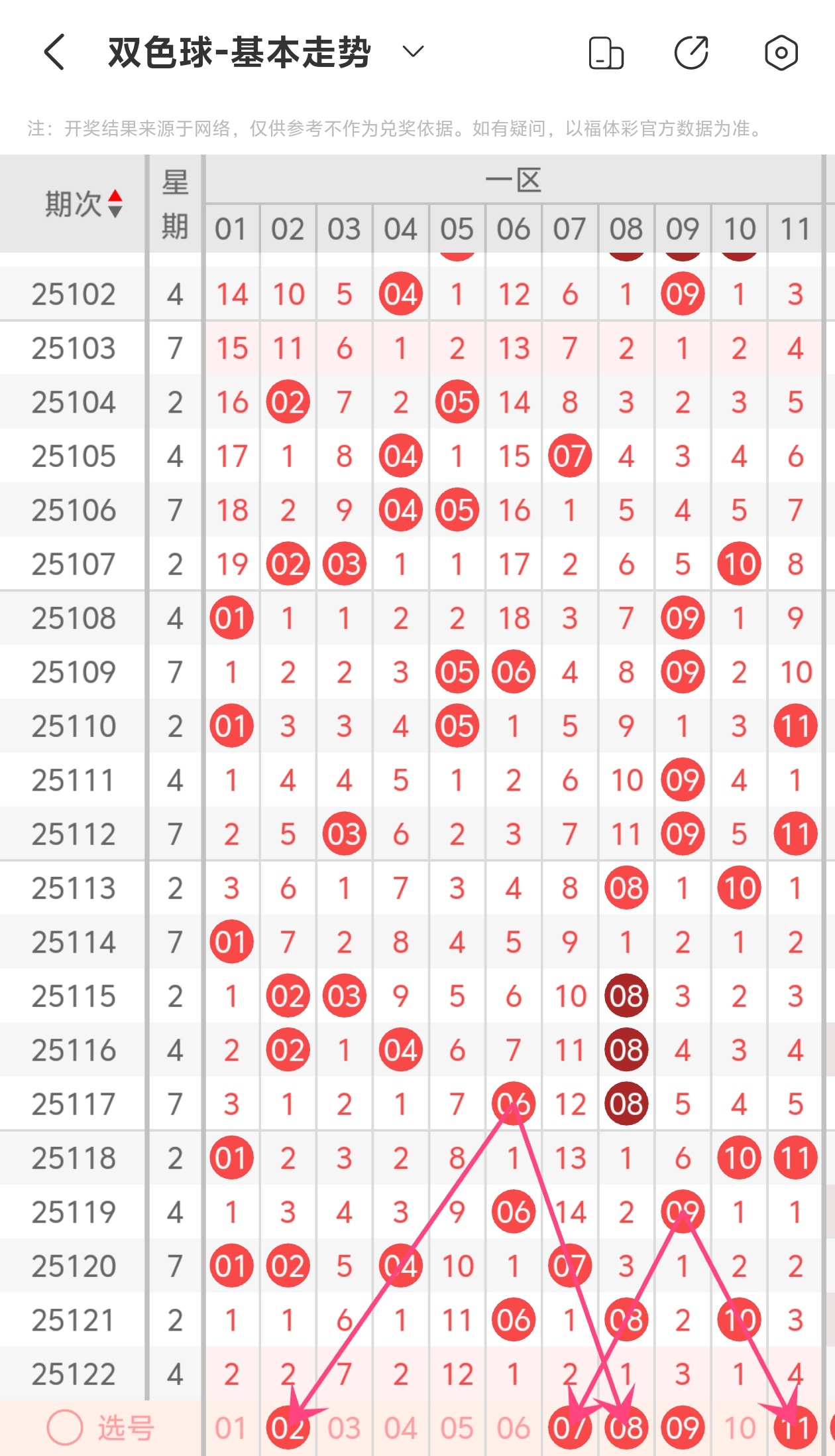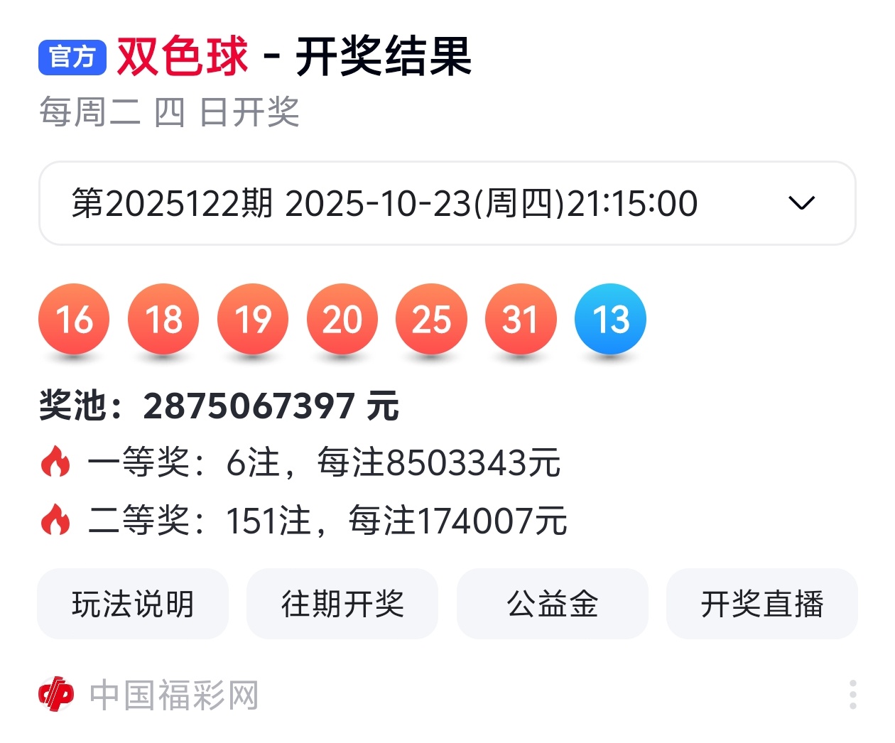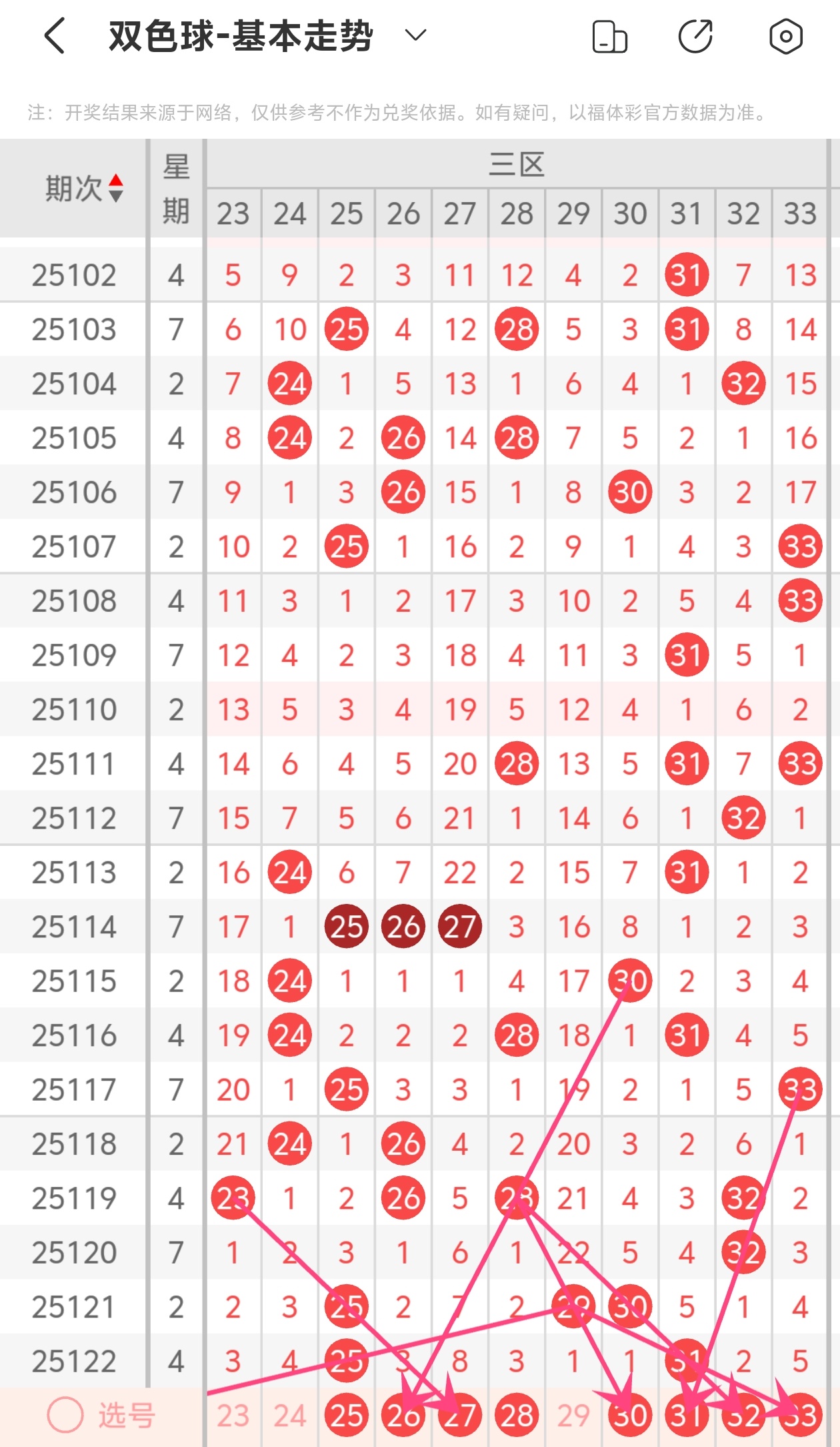 下面是我对2025123期福彩双色球的分析和预判,希望通过我的分析能让大家今晚大红!福彩双色球上期开奖号码如下图: