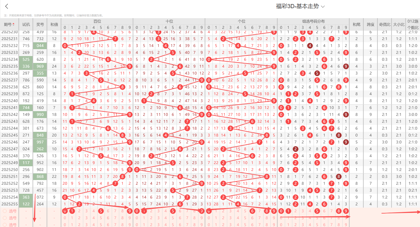 ①百位:上期开出小号偶数2号,在历史开奖记录中显示一般正常的奇偶周期平均在1~3期为普遍现象,偶数连续开出3期上期为2路号码,依据奇偶以及012路周期性规律的转变特征点即本期0路号码有开出的趋势1路号码注意预防。