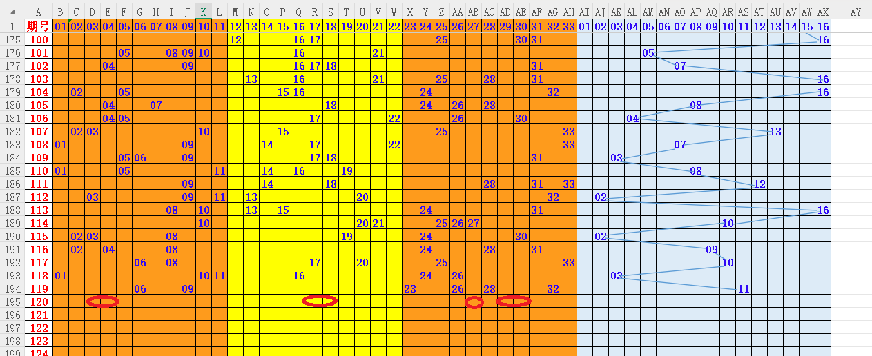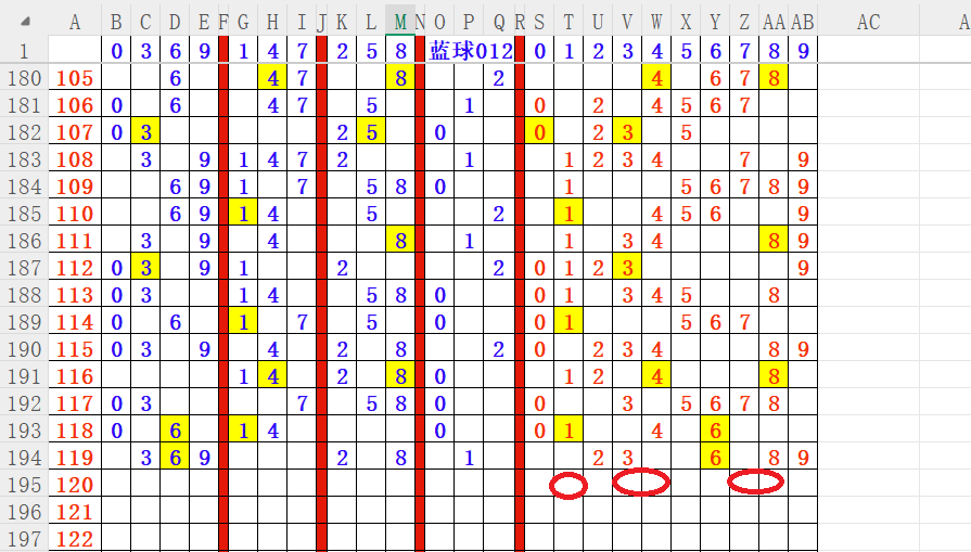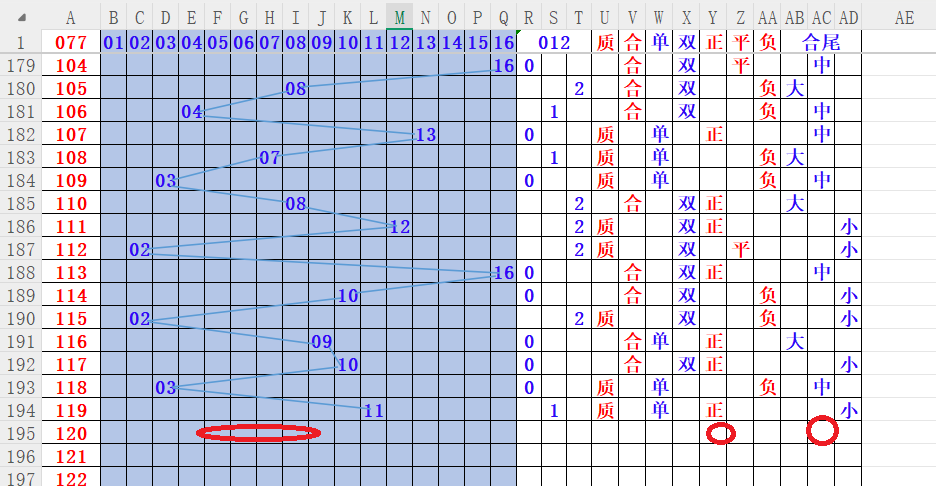 如上图4,012路分析012路,本期重点10路。重点 03 04 05 07 08