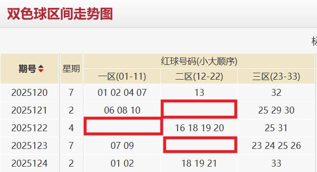 近五期一区开奖号码数量为4+3+0+2+2=11枚,整体占比为36.7%;二区开奖号码数量为1+0+4+0+3=8枚,整体占比为26.6%;三区开奖号码数量为1+3+2+4+1=11枚,整体占比为36.7%。一区占比高于均值,呈现上升趋势,本期重点关注。二区占比过低,呈现上升趋势,周期内断区两次,波动剧烈,本期倾向于断区。三区占比高于均值,呈现下降趋势,鉴于整体波动,本期慎防。基于波动趋势衡量以及动态平衡干预,本期区间比倾向于3:0:3。