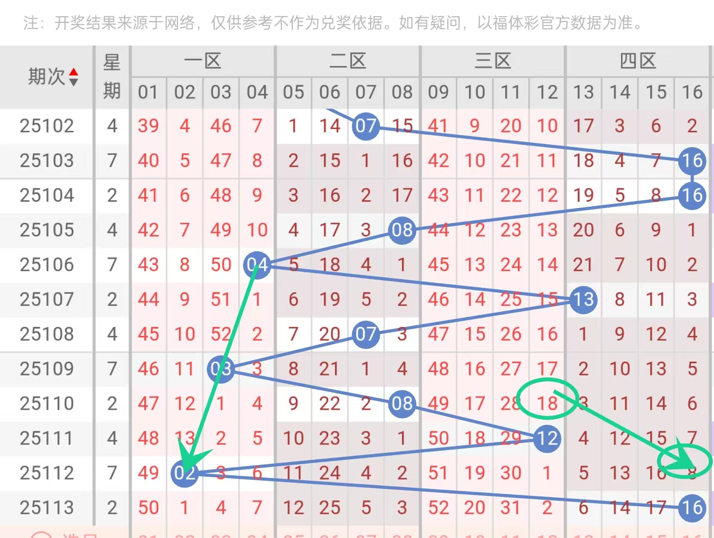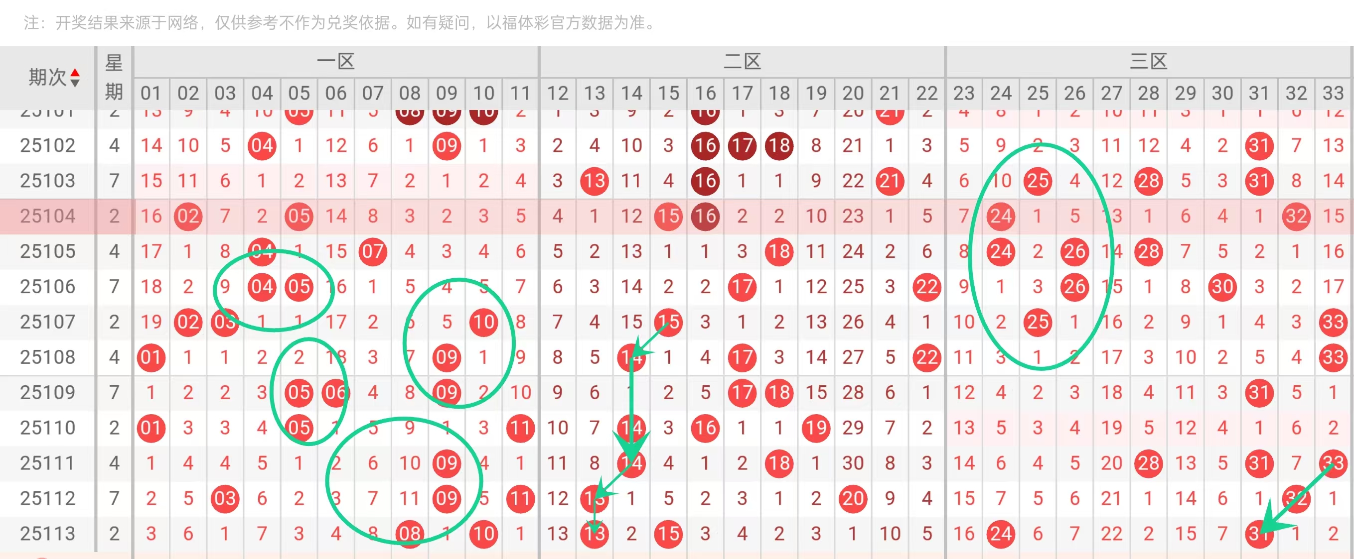 号码10:这是一个中频热号,在历史数据中出现超过30次,尤其在近期(如2025113期)出现,表明其活跃度较高。它位于中小区间(1-16),有助于平衡大小比。
