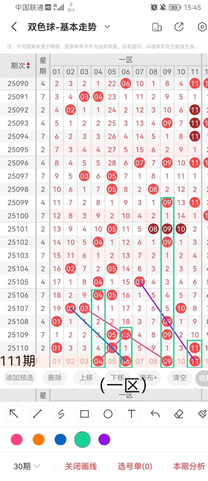 通过以上对上期的简单回顾,下面进入双色球第2025111期(下面简称本期)的选号分析: